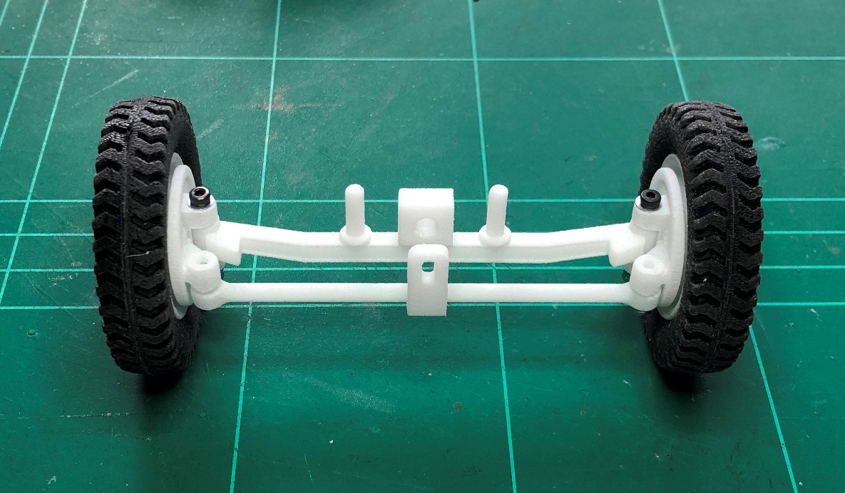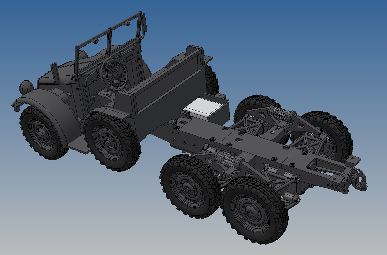 Yes, it´s all 3D printed. As usual I´ve made the overall design, but this time, no WPL parts were used. It wasn´t possible to get a good solution for the rear axles, so I tried to "copy" the original design