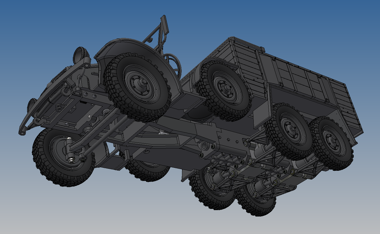 Yes, it´s all 3D printed. As usual I´ve made the overall design, but this time, no WPL parts were used. It wasn´t possible to get a good solution for the rear axles, so I tried to "copy" the original designHerr Dr. Professor wrote:Tell us more, please. Did you build that from 3D printed parts? scratchbuilt? Just how did you do such fine modeling? What electronics does it use?