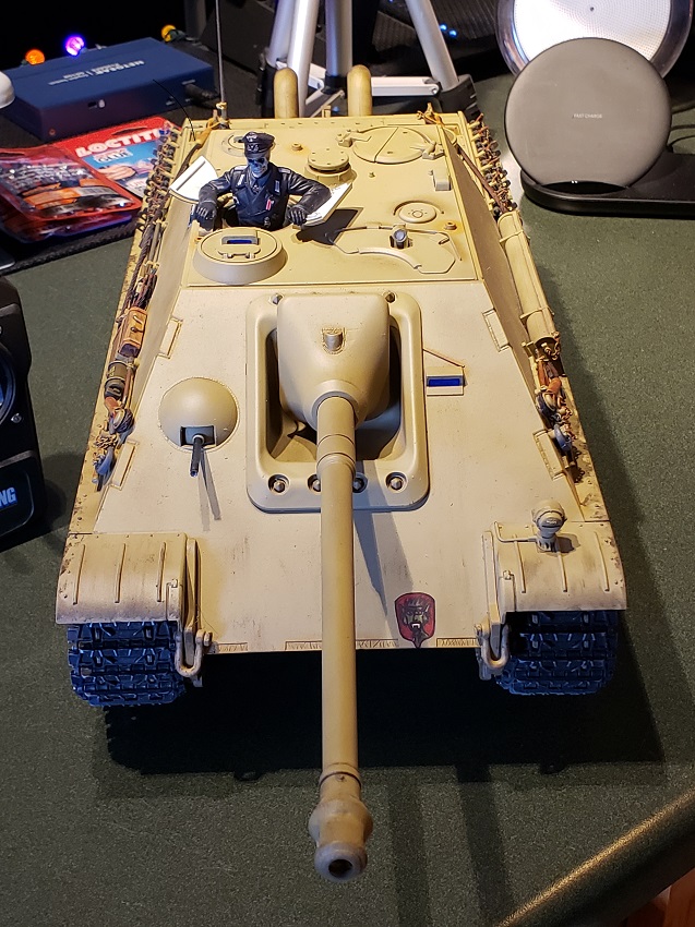 Interesting! I do not recall seeing anyone do an RC Jagdpanther in all Dunkelgelb, although, of course, at some point most of the real ones had to be all Dunkelgelb, if only out the factory door. Not only is the commander something different, but so is his ride. Nice!