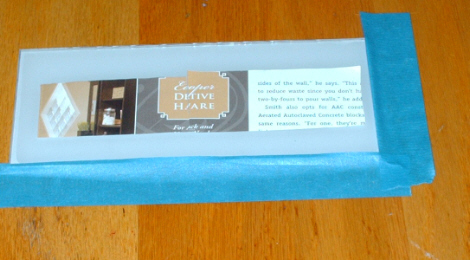 Place the magazine page with the image you printed face down on the Lexan. Static will help here.