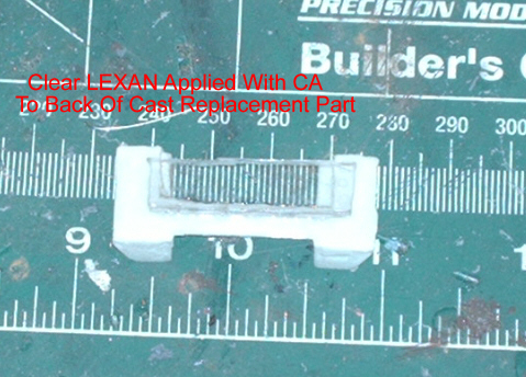 I cut a square of clear LEXAN and attacheditto the back of the cast armor. I then applied a strip of drafting tape to the front in order to protect the clear LEXAN from paint.