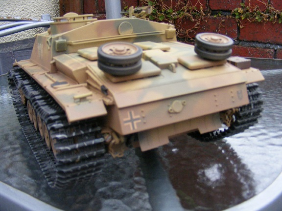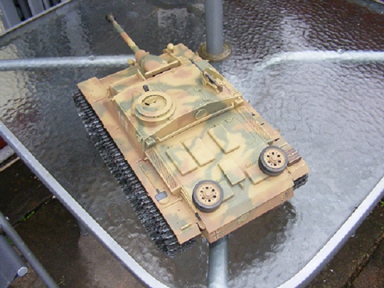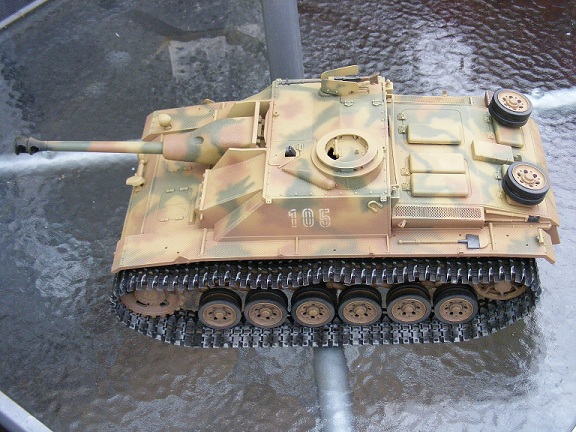 At long long last the Stug nears completion. Here she is in her new livery with slightly "dirty" feet :haha:. The old girl has a new metal chassie, metal wheels and wider Osterfront tracks for that dragester look :wtf: . just a few bits to go back on and she's done. As always comments and observations welcome. All the best for now