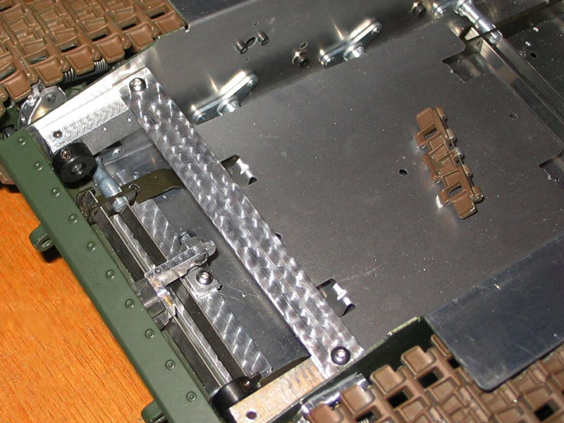• The photos show the completed "runner" front and rear hull bracing and a hint of the new spring loaded idler return system.
