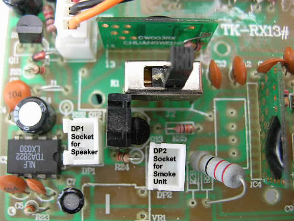 There are two versions of the Rx13 board: one has the power transistor on it (D882) and one doesn't. The one that has the power transistor on it is matched with a non proportional smoke unit that only has two resistors on it's small board. The Rx13 that doesn't have the power transistor on it is matched with a smoke unit that has the power transistor on it's small board.