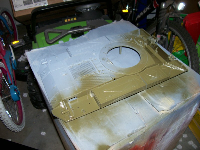Ok I braved the fumes and took a few pictures. Nothing to really look at yet but the paint definitely looks better then it did before. It doesn't feel so PLASTIC now. Filling in all the seams on the gun barrel will be nice as well.
