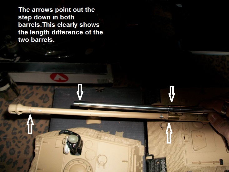 The difference in the Tamiya barrels are from the step down to the muzzle brake,the pictures below demonstrate this. But the real KT barrel differences must be at the breach, and maybe Tamiya got it wrong?