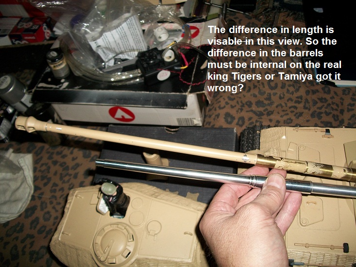 These are both Tamiya King Tigers,one Henschel and a Porsche. I received a message that the barrels are the same number of calibres but the two piece barrel seems short because of the amount of gun in the turret?