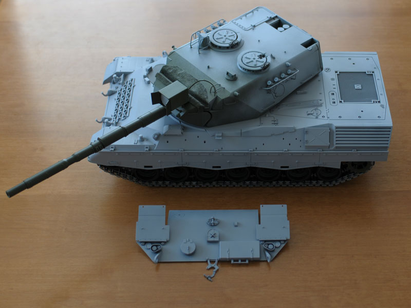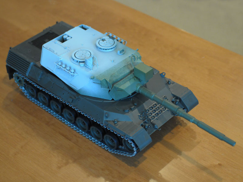 Work in progress photo review on converting the newly re-released Tamiya Static Leopard A4 to full option.