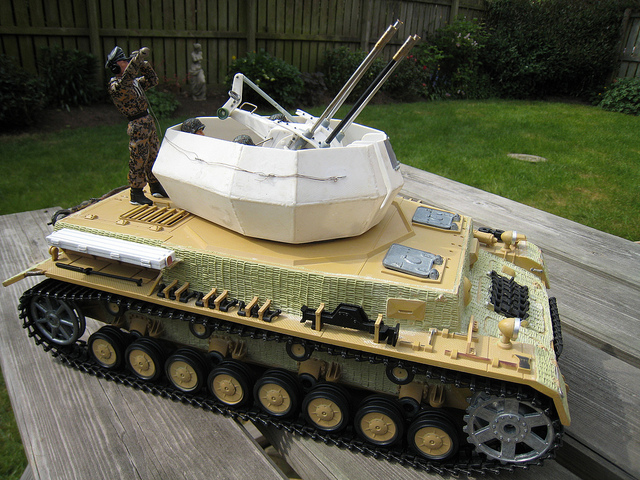 Its been a long time since I have been on the Forum. I started the wirbelwind nearly 18 months ago and now its nearly ready for paint. The Quad cannons have fibre optics running through to the Flash arrestors connected to an LED. Metal tracks sprockets and idlers fitted along with opening front hatches. It will have a driver and wo/mg gunner to compliment the cannon crew and TC. I intend to fit a sound module, that will be operated on turret traverse. The voice over will say achtung enemy jabo bomber open fire. It will have an overlay of cannon fire and aircraft engine noise.