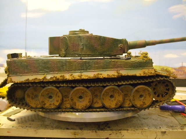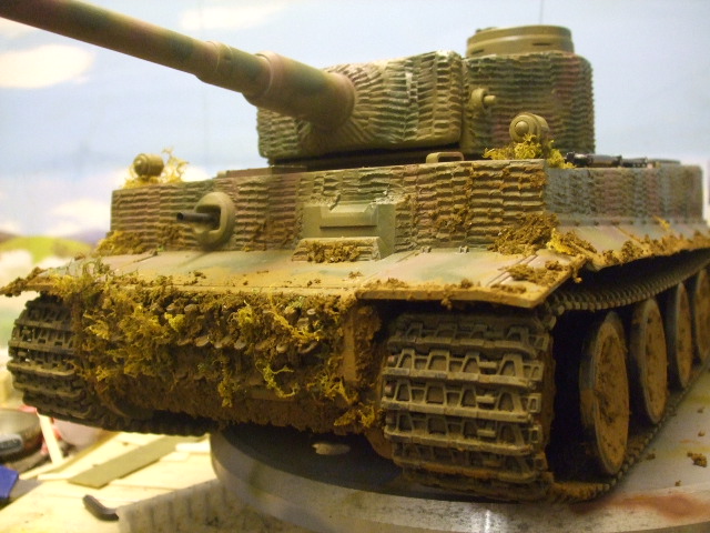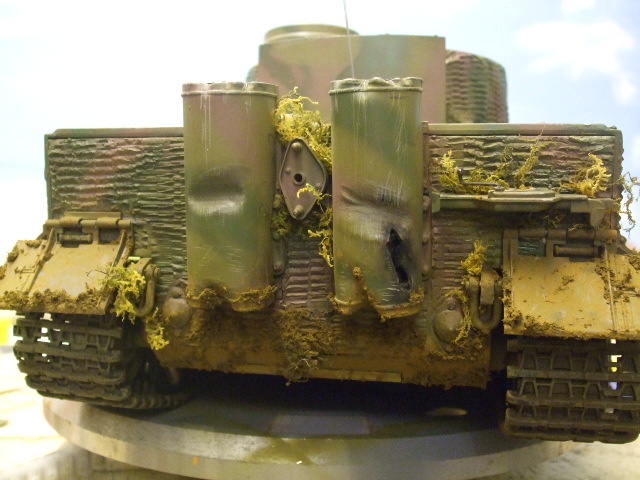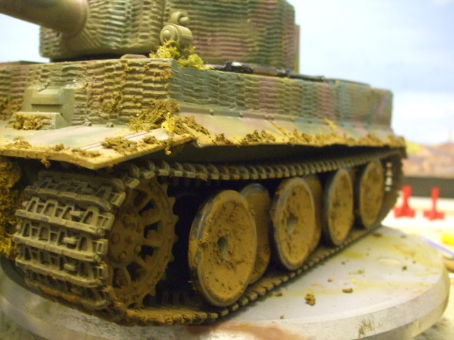 here are a few pics of my Tiger, the zimmerit is a bit to heavy i think, i havnt finished the top yet, hence the tools are not painted, (i should have ground them off) and there are no markings, but saying that there were some that had the numbers and other markings painted over by the crew when they applied the cam. All comments and,( "thats wrong") are welcome, you dont learn if your not told.