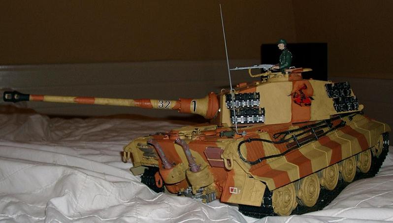 Soon I'll get zimmerit for the metal turret from a Tamiya builder who hates the stuff; then that error will be corrected, too. For the rest a very good detailed model with enough power in it and the feels of a real tank (heaven, no 65 tons, lol) Next week I'm going for a Tiger I and already decided for the 90% metal Taigen Advanced Metal with has already zimmerit in the right places and a very nice paintjob, I will have to check the colours for the fitting Panzer division but with a little luck I can stick the green knights on the turret which will look awesome next to the Königstiger. It depends if I will be going foor a GW Tiger and Jagdtiger as well, we'll see!
