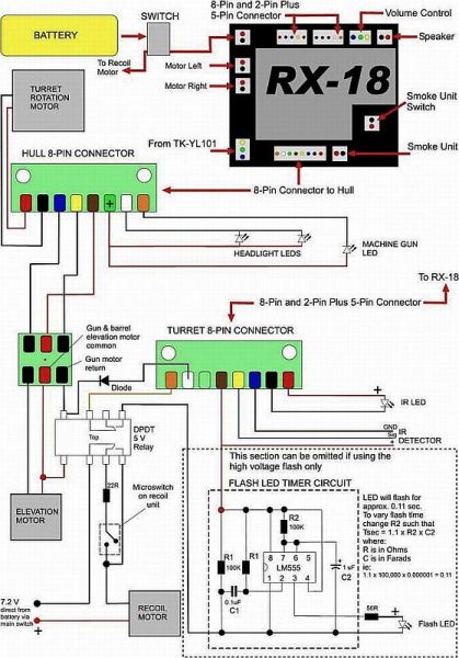 2. the RX18 only has one 8 pin connector for the turret, barrel and lighting controls and on the top side there is the 5 pin X2, 3 pin volume and the 2 pin speaker.....but they keep referring to another 8 pin .....Is the 'HULL' 8 pin and 'Turret' 8 pin the same thing?? ......and if so does that mean that some pins share other functions?