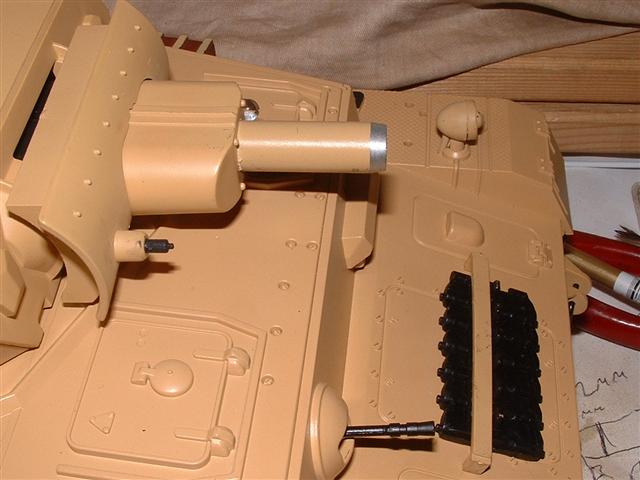 By the way it is no where near completed there is a lot to do before its converted, I put the styrene tube over the Brass tube as it looked a bit too small but now Im not too sure but its easy to remove it just slides on, yeah its an old tiger muzzel brake from a spare tiger barrel i had lying about, it is simmilar to one I have seen on a late panzer 1V used by the Finnish army.