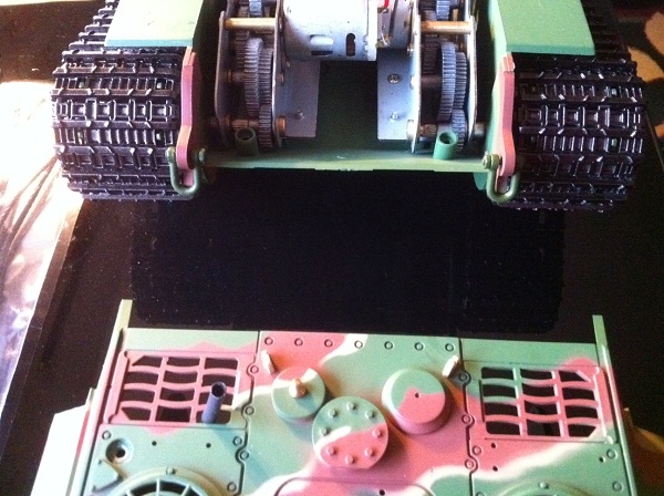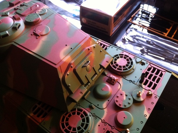 I'm on the fence about replicating this paint job over zimmerit or just leaving it be (Yes, no screaming, *chuckles* I do like the green camo and went so far as to get touch up and spray paint in that color) and do my usual factory fresh with enhanced welds bit again. Talk at you again soon. I never would have gotten this far without inspiration from all of you on this site.