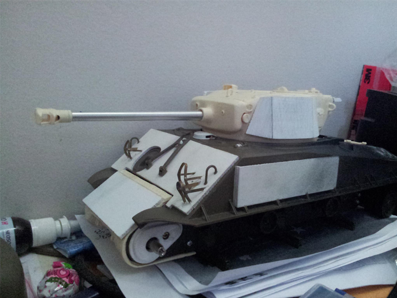 I'm working on a conversion for the original Tamiya Sherman to M4A3E8 "Easy Eight". Below I send the photos of the progress so far. I have a question: does anyone know how to make the barrelrecoil with servo?