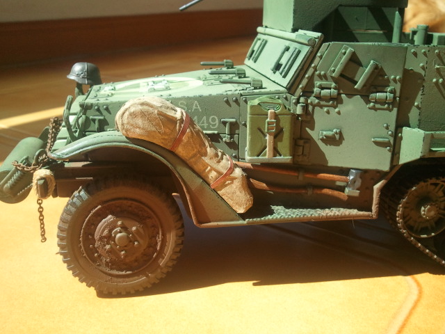An other vehicle made for some dioramas background it's a of the 21th century toys M3 Half Track. This model buyed on internet was with a "kind of" winter paint scheme. I modify it to go with the rest of my 4th US A.D. at the end of 1944 before the Battle of the Bulge.