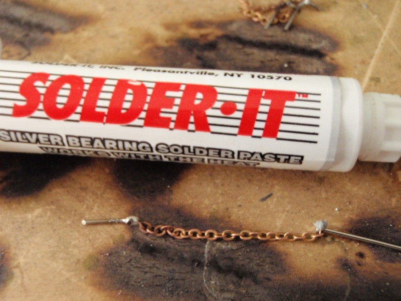 I used standard sewing pins which fit perfectly in the links then used liquid solder to fix them and trimed the pin to length.